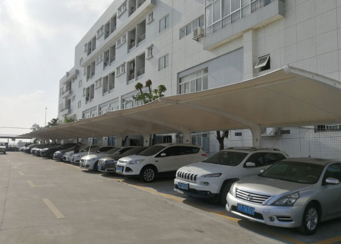 1、膜結(jié)構(gòu)車棚的篷布材質(zhì)是PVC、PVDF、PTFE聚酯類,而膜材的特點是強度高、耐久性好、防火難燃、自潔性好,不受紫外線影響,使用壽命長,一般15-30年。